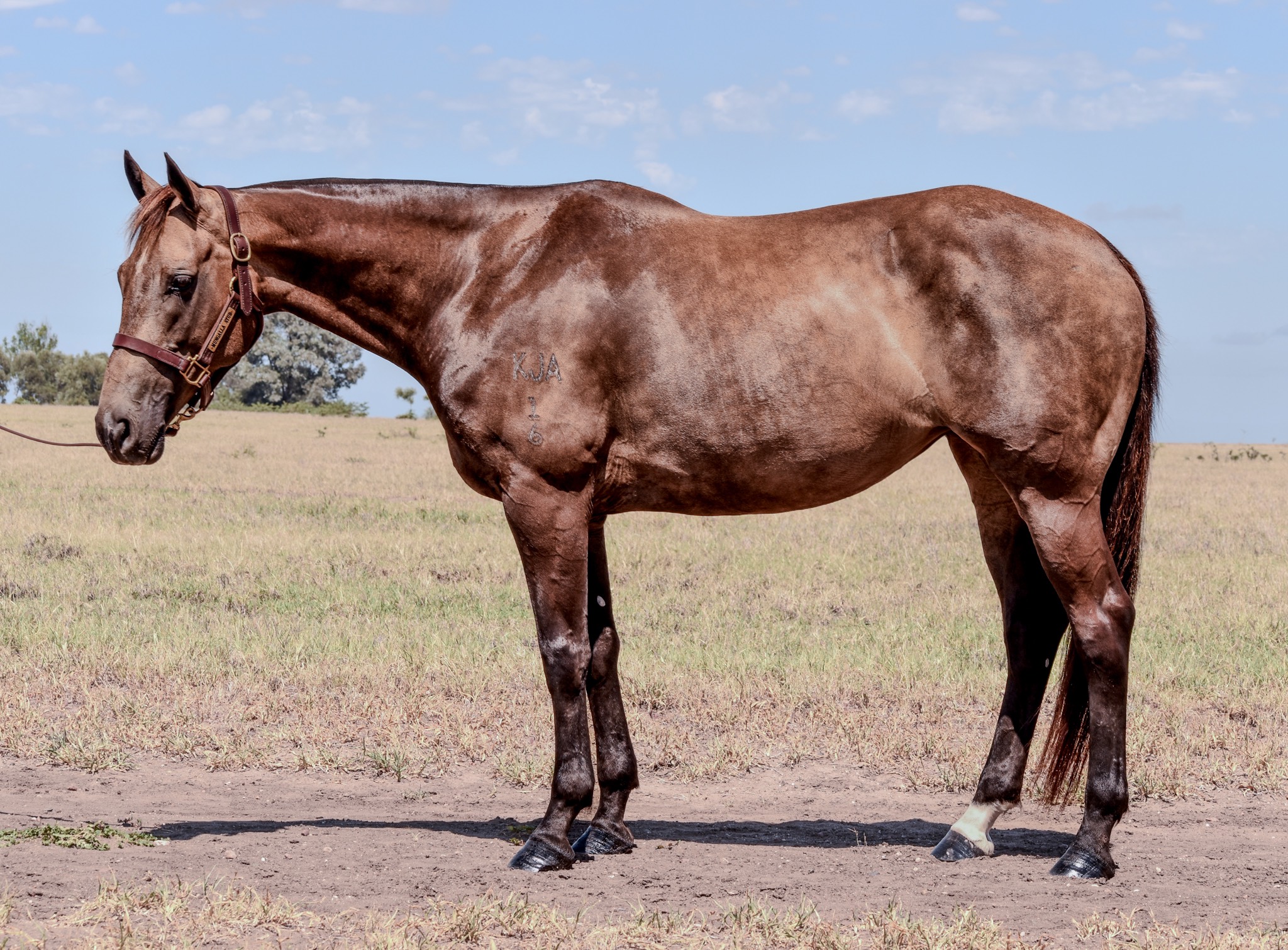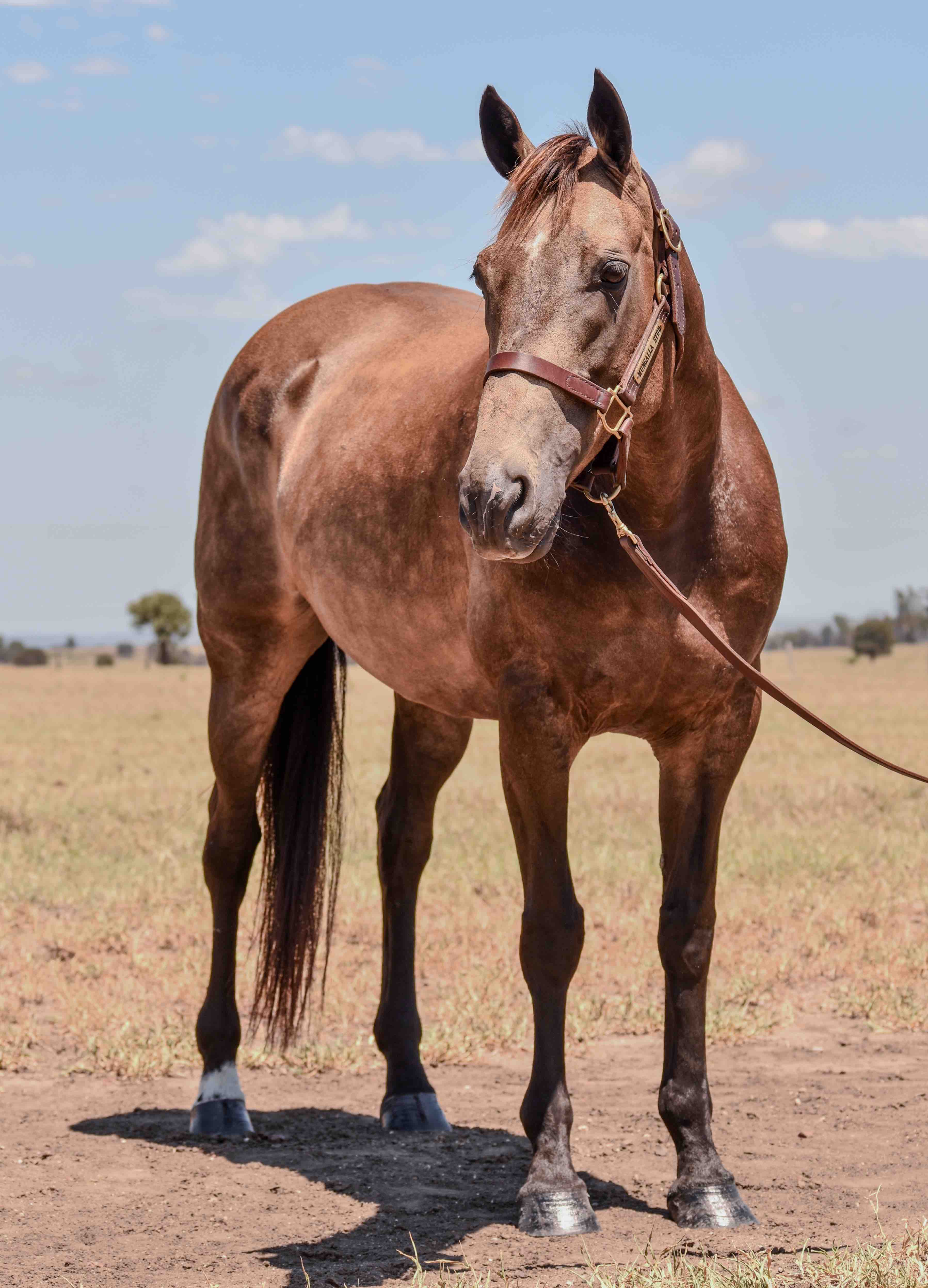 Conmello was born on the 25th of October 2016 at ‘Farnham’ in Taroom, Queensland, bred and owned by Kylie Graham. She was the result of an embryo transfer between Mello Oak and Hazelwood Conman and arrived as a leggy, dun-coloured filly with a quiet presence about her.