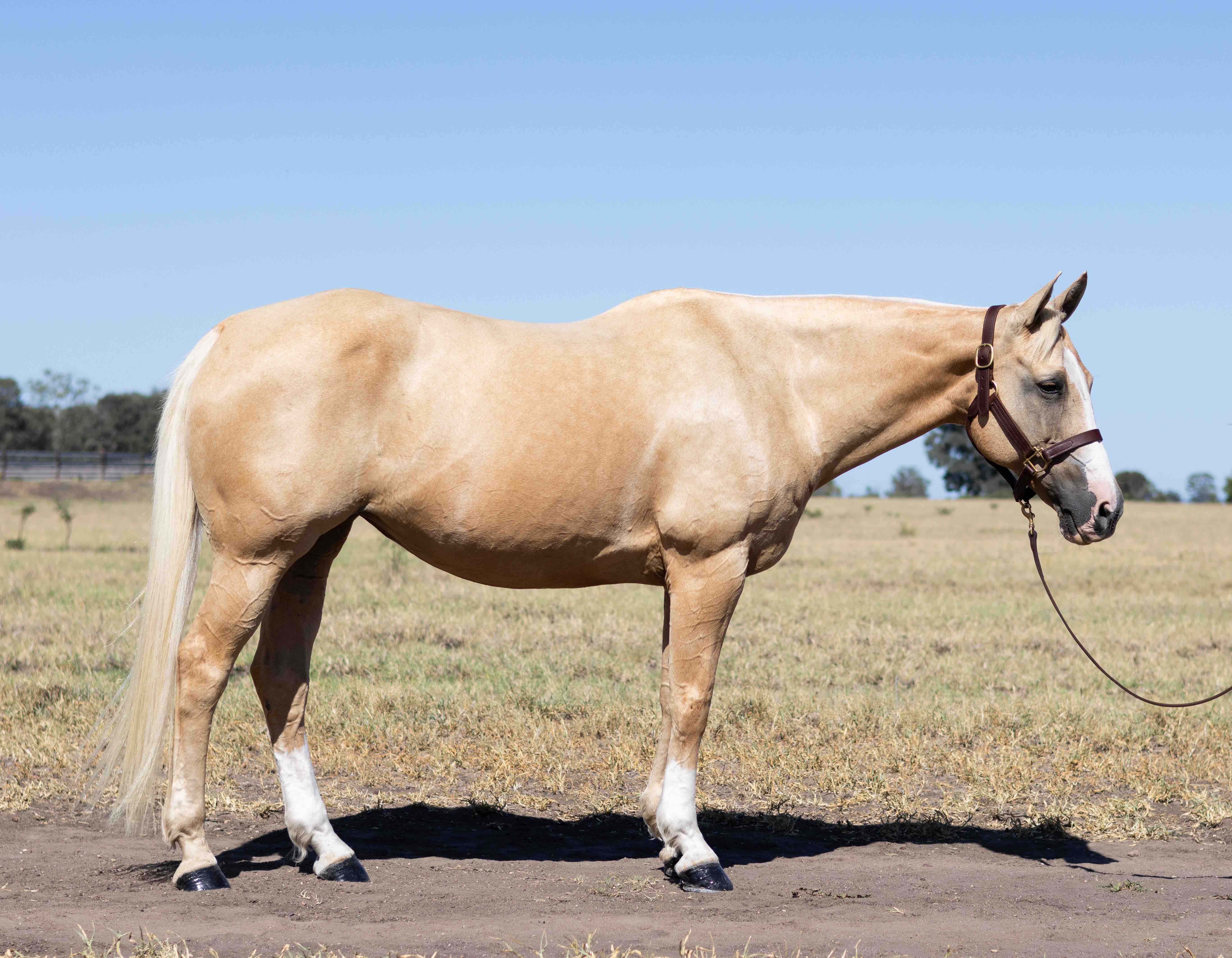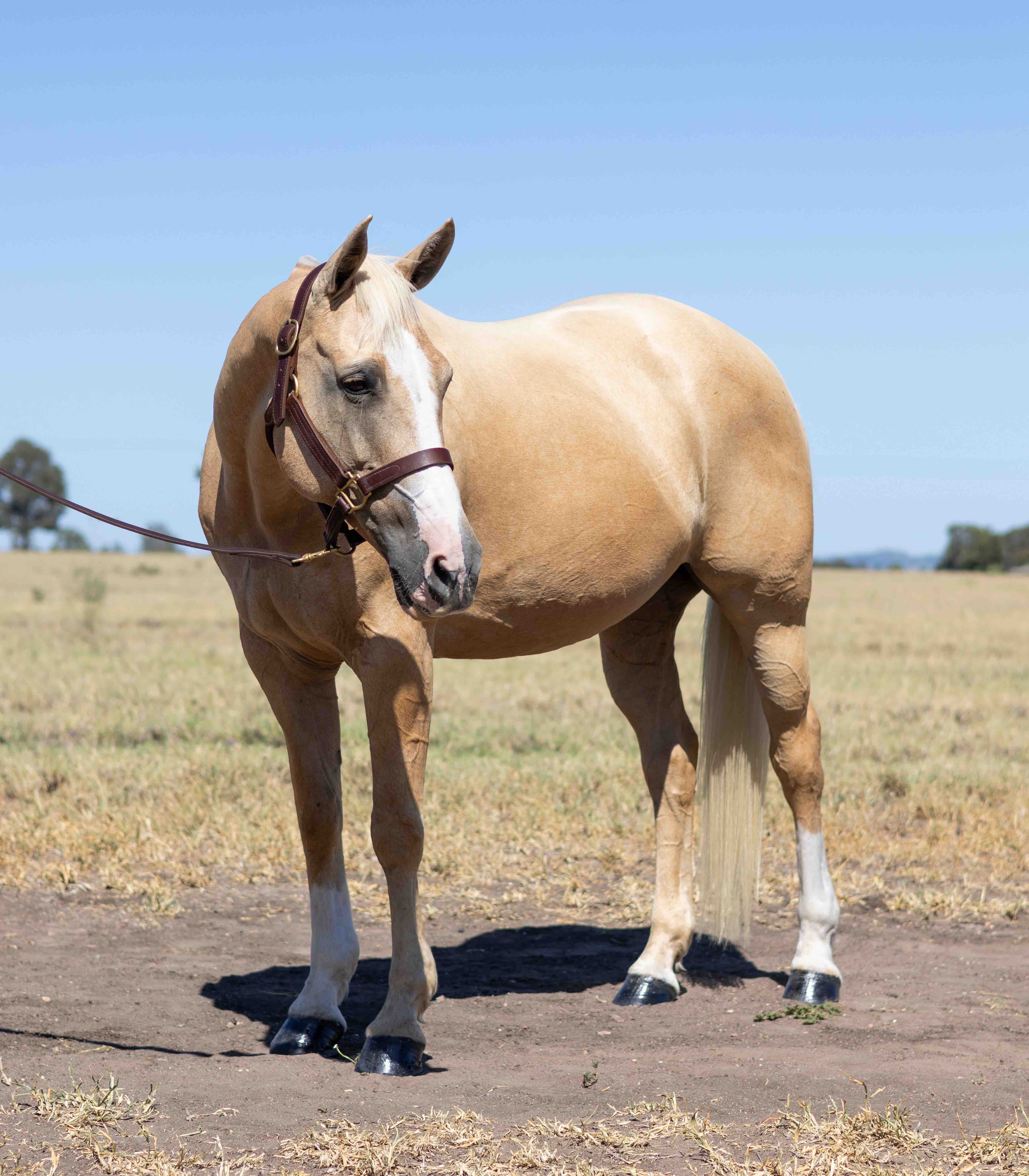 One Moore Mello, a palomino filly born on September 24, 2009, at ‘Farnham’ Taroom QLD, was bred and owned by Kylie Graham. She was the result of a natural service between Mello Oak and One Moore Senor, who had a successful cutting career with both Todd and Kylie. Blondie was the fifth foal Mello Oak carried naturally, and Kylie knew from the start they would stay together.